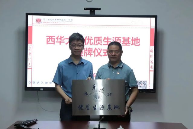 宣讲结束后,冯永泰与郫都一中党委书记、校长李玉林代表两校签订了优质生源基地协议,并举行了“优质生源基地”授牌仪式。通过本次招生宣讲讲座,进一步加深了我校与郫都一中的沟通和联系,促进了我校与中学之间的合作,有益于吸引更多优质生源了解和报考我校。