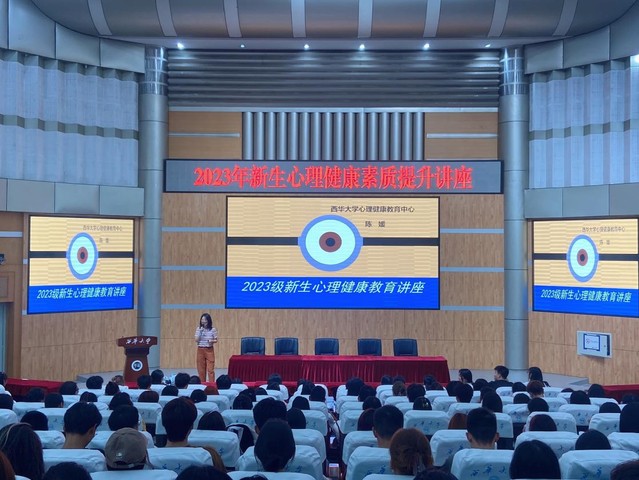 为引导2023年新生更好地理解、认识、完善自己,以便尽快适应、融入新的学习生活环境,提升学生整体心理素养,2023年9月18日下午,马克思主义学院在四教报告厅为2023级全体新生举办了心理健康专题讲座,学校心理健康指导中心的陈媛老师担任本次讲座的主讲嘉宾。