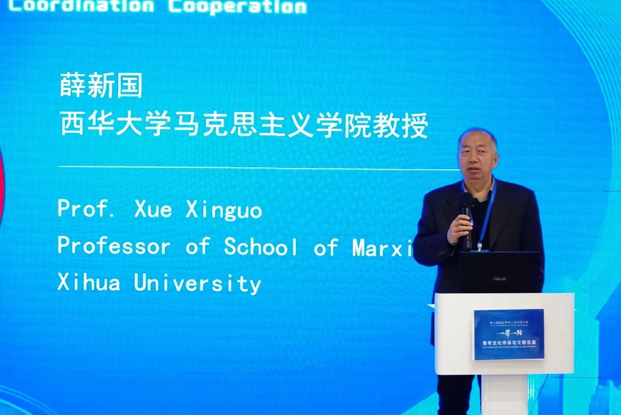 2023年11月25日,第七届国际青年人文对话大会在京举行。本次大会以“‘一带一路’青年文化传承和文明互鉴”为主题,来自中国、德国、巴基斯坦、沙特阿拉伯和埃及等国家的专家学者和各行业青年代表,共同探讨了“一带一路”进程中的文化传承与文明互鉴中的合作及创新问题。我院薛新国教授应邀出席大会并作题为“全人类共同价值与人类命运共同体关系问题”的主旨发言,引起国内外学者的关注,提升了bw西汉姆联马克思主义学院的知名度和影响力。