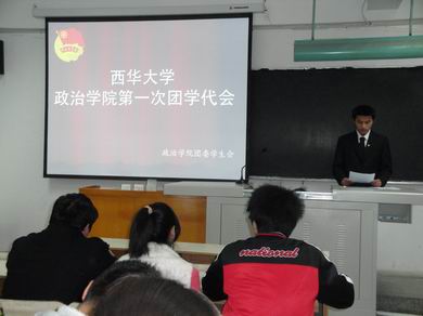 大会在庄严肃穆的国歌声中拉开帷幕,第一项由熊华书记发表讲话:政治学院学院所获得的荣誉都是同学们共同努力的结果,此次选出的团学代表提出应具有先进性和代表性,有群众基础和政治热情。最后,熊华书记指出此次大会召开的重要意义——旨在增号召力、凝聚力和战斗力。大会第二项由政治学院团委副书记唐福团分别从“构建温暖团结的集体”、“积极进取,思想上不断探索创新”、“严于律己,坚持做好常规工作”、“开拓创新,组织丰富多彩的学生活动”这四个方面作本学年政治学院团委的工作总结,并指出团委发展中的不足和今后的主要发展目标。