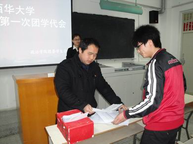大会第三、四、五项议程在政治学院团委书记任亚妮老师的主持下,有条不紊的进行着:宣读选举细则,简要介绍候选人情况,推选监票人、计票人等。本着公平、公正、公开的原则,选出了政治学院团委委员会成员:任亚妮、唐福团、张代玉、胡玉山及廖云杉。随后,在张代玉的主持下,任亚妮、唐福团分别当选为政治学院团委书记和副书记,并代表出席共青团bw西汉姆联委员会第一次代表大会。学生代表选举大会也在学生会主席王轩霆的主持下紧锣密鼓的进行着,最后由08级思想政治教育1班的唐福团同学及09级思想政治教育1班的黎欣欣同学获选。