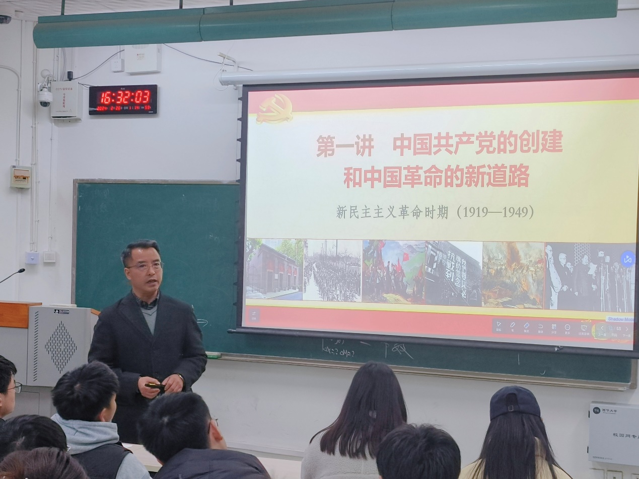 老师们在3B202教室观摩了郑小明教授以《中国共产党的创建和中国革命的新道路》为主题的公开课。郑教授备课充分,语言生动,思路清晰,为同学们呈现了一堂精彩纷呈、活泼有趣的党史课。老师们通过观摩学习,结合上学期教学过程中的经验总结,对本学期的教学重难点,以及怎样运用线上教学资源帮助学生更好地学习党史有了更深层次的思考。