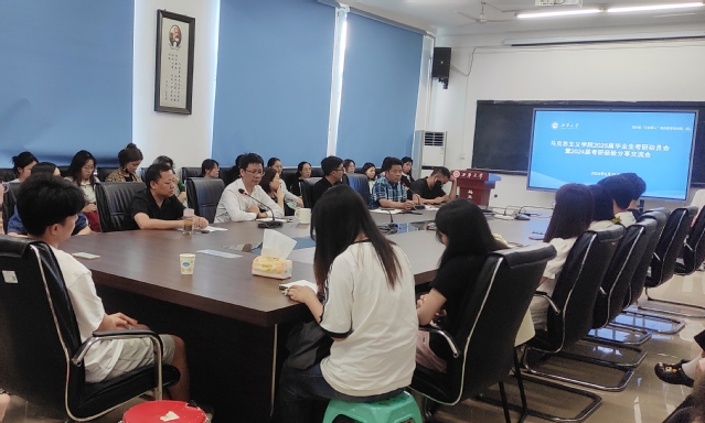 5月15日,马克思主义学院召开2025届毕业生考研动员会暨2024届考研经验分享交流会。学院党委书记万远英、院长冯永泰、副院长尹德志、副院长王贝、思想政治教育教研室主任王雪峤、学工办主任杜靖、辅导员钟兴悦、2020级考研优秀学生代表以及2021级学生参会。会议由学院党委副书记石元鹏主持。