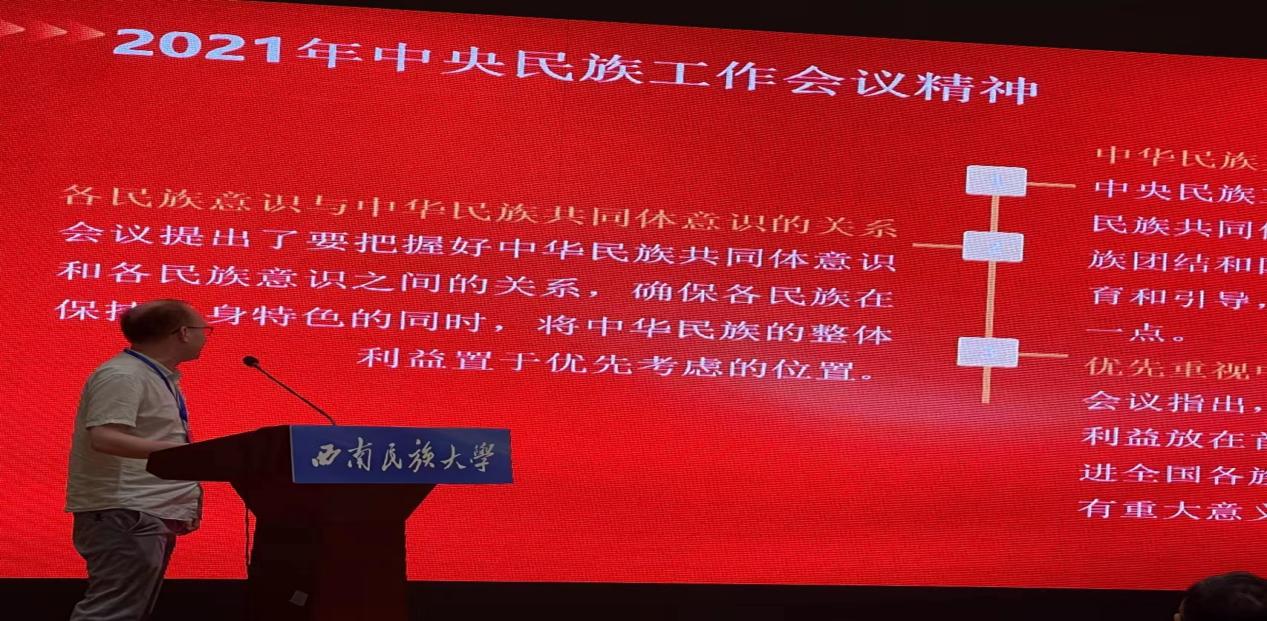 在下午举行的学术研讨第一小组发言会上,我院余颖杰博士,作为青年教师代表作了题为《近代西南彝族精英中华民族认同的叙事与实践》的发言,他介绍了近代西南彝族精英,在面临外敌入侵,民族危机日益严峻的情况下,他们的民族意识不断觉醒,他们以不同的叙事方式表达了对中华民族历史和文化的认同、中华民族身份的认同,同时归纳总结,西南彝族精英共同参与中华民族建设的具体实践,进一步揭示其对铸牢中华民族共同体意识和构建中华民族命运共同体的现实意义。