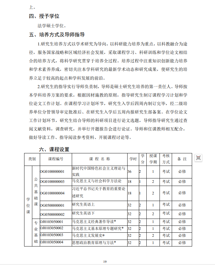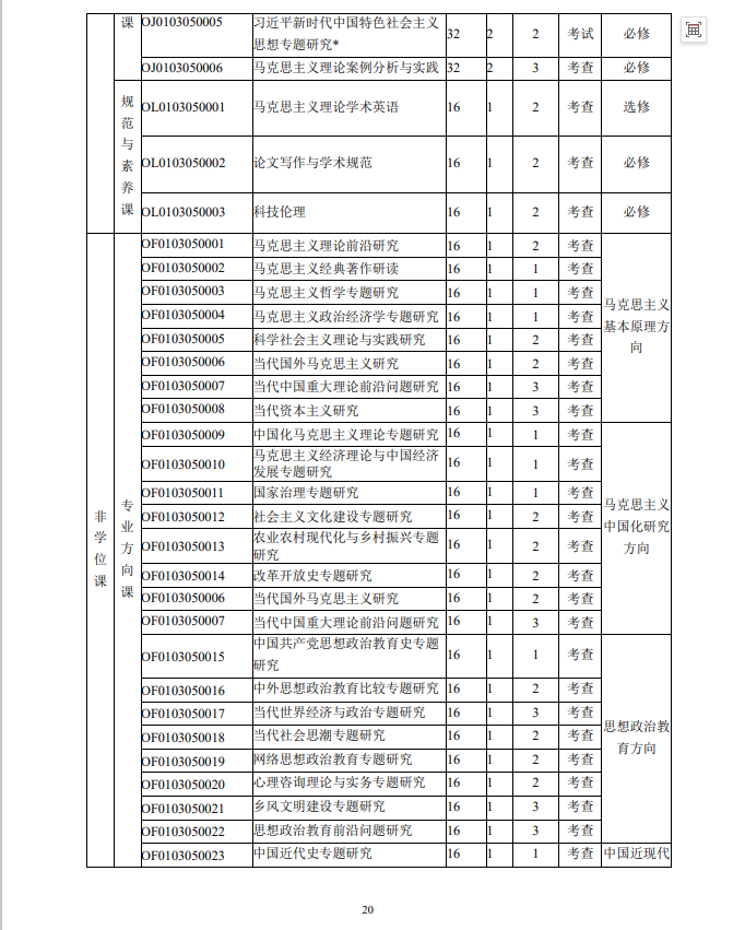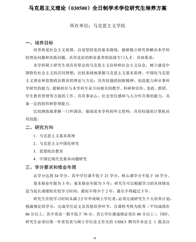 马克思主义理论(030500)全日制学术学位研究生培养方案