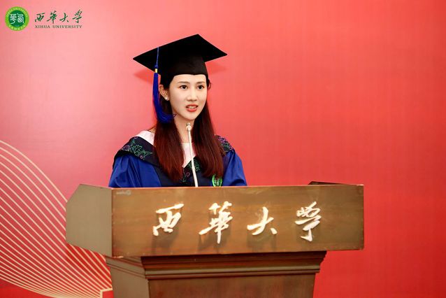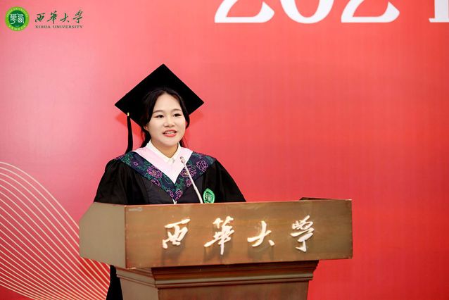 2020级本科生毕业生代表、省级优秀毕业生万德莎深情回顾了在校度过的美好时光,向学校、学院以及老师们表达了感激之情。她表示,“将永葆西华马院人的底色,继续做一个能说、会写、善思、明辨、有情怀的马院人。”