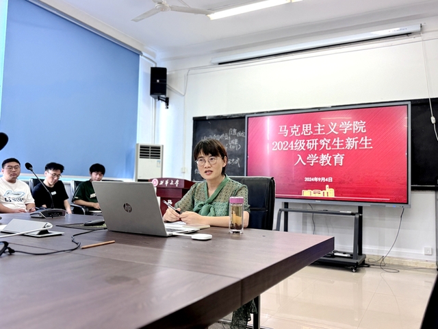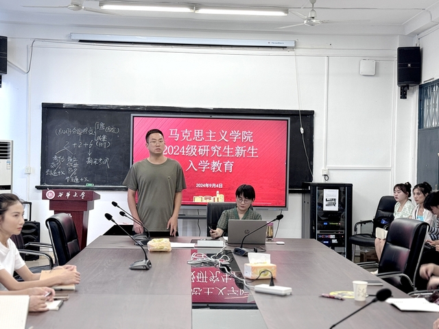 春光不负赶路人,韶华终许追梦者。为让2024级研究生新生更好地融入新的学习科研环境,尽快了解学院情况,适应研究生生活,促进师生之间的交流,9月4日上午,马克思主义学院2024级研究生新生入学教育第一课在一教5015会议室举行。学院曾小林教授介绍了研究生培养方案,学工办主任杜靖主持入学教育第一课。