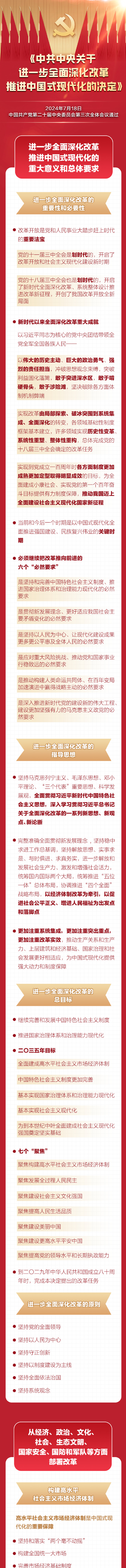 7月15日至18日,党的二十届三中全会在北京举行。全会审议通过了《中共中央关于进一步全面深化改革、推进中国式现代化的决定》。
