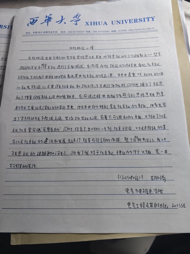 电气与电子信息学院 电气工程及其自动化 胡刘奇