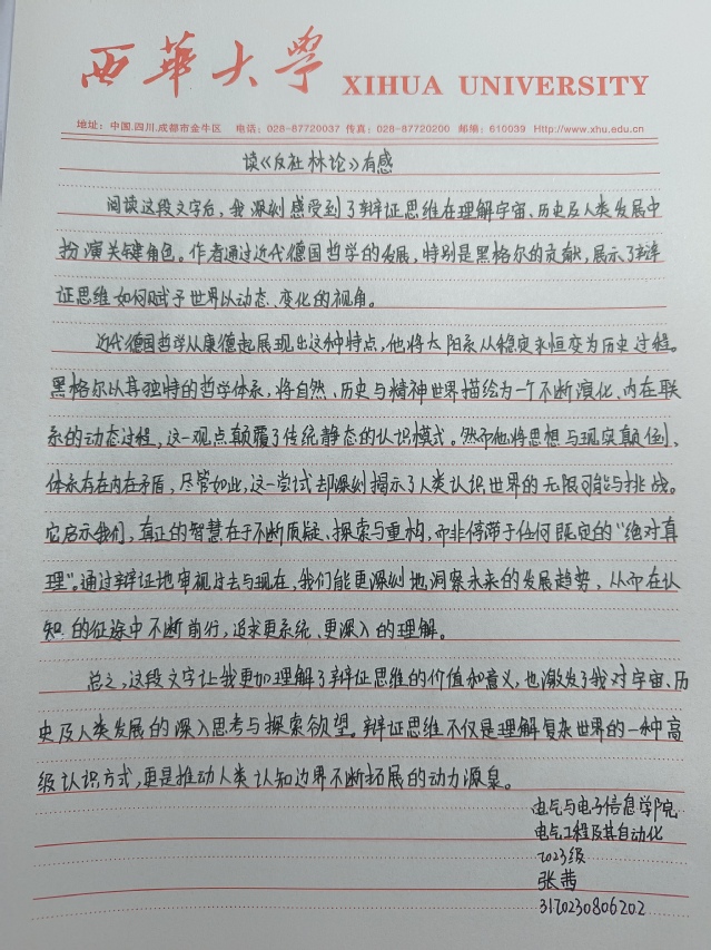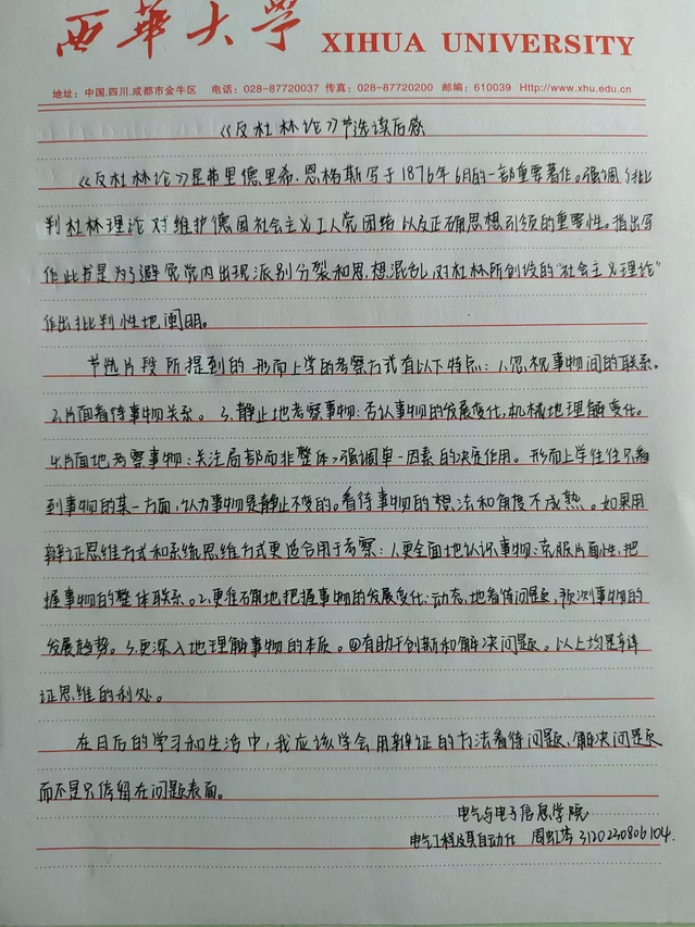 电气与电子信息学院 电气工程及其自动化 周虹芩