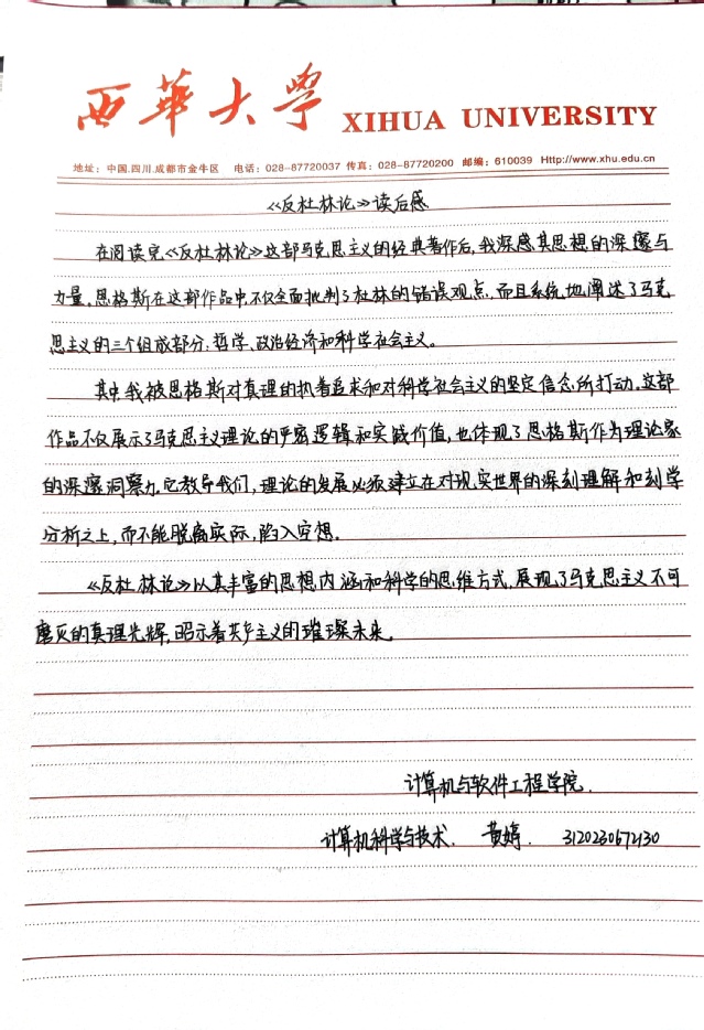 计算机软件与工程学院 计算机科学与技术 黄婷