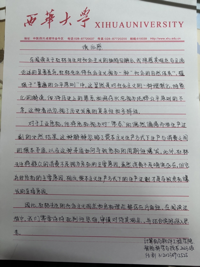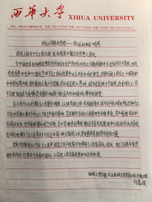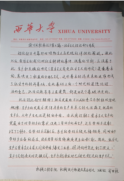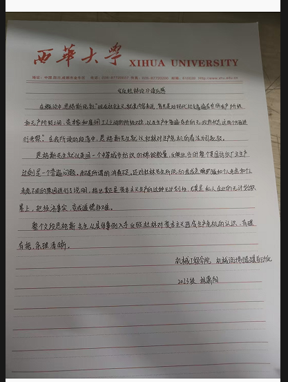 机械工程学院 机械设计制造及其自动化专业 林潇阳