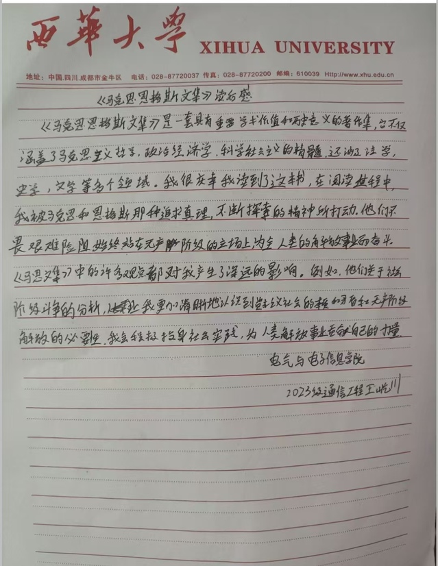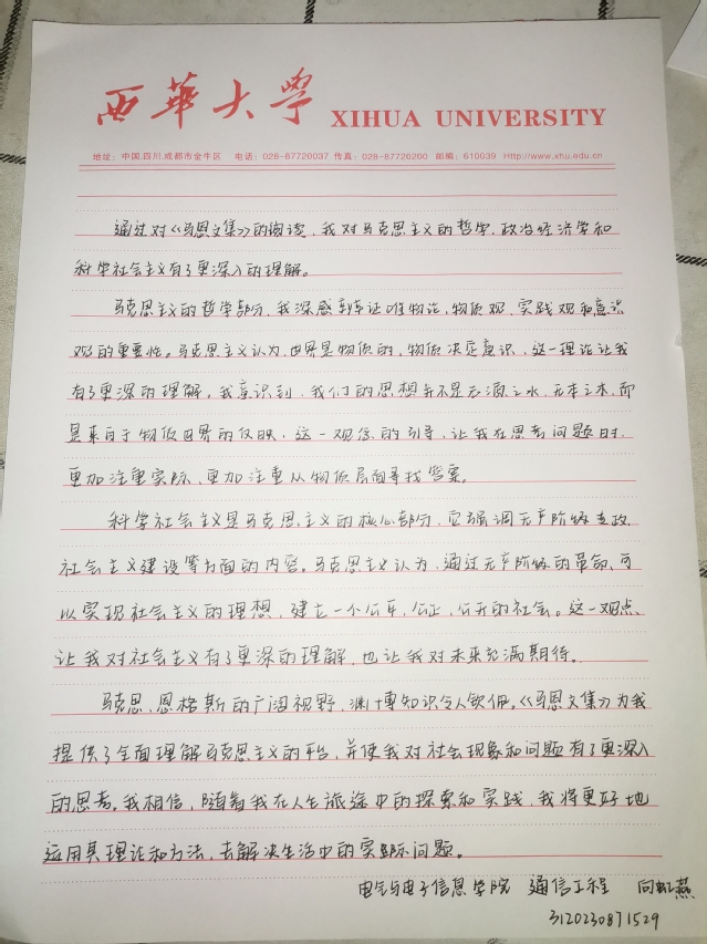 电气与电子信息学院 通信工程专业 席浩田