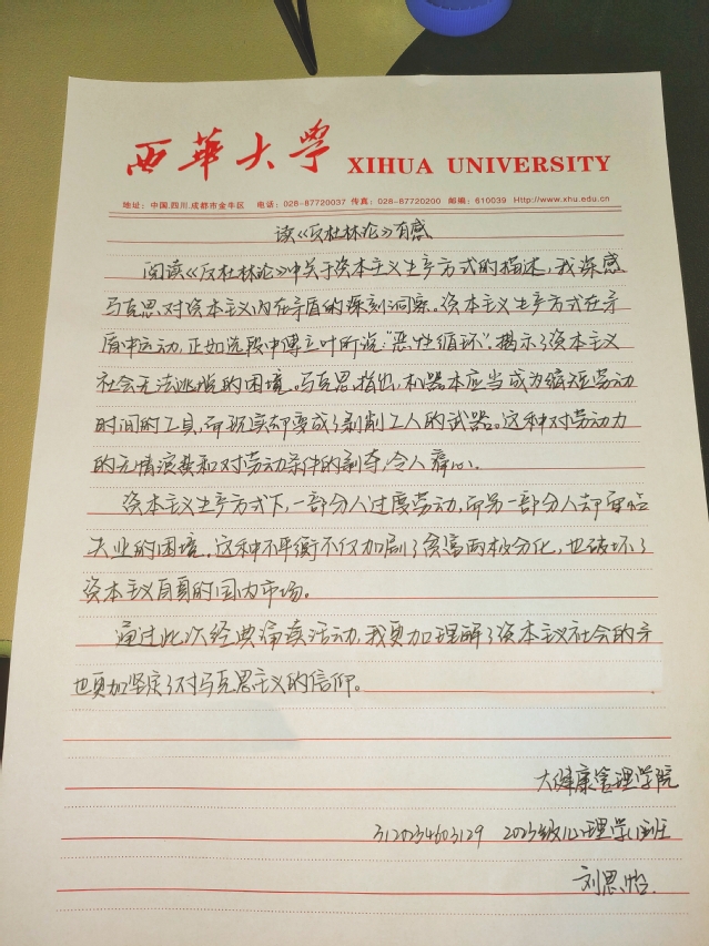 大健康管理学院 心理学专业 刘思怡