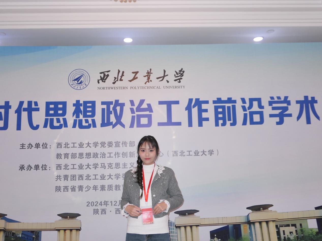 2024年12月7日,由西北工业大学党委宣传部、教育部高校思想政治工作创新发展中心主办,西北工业大学马克思主义学院、共青团西北工业大学委员会、陕西省青少年素质教育研究会联合承办的“第四届新时代思想政治工作前沿学术论坛”在陕西省西安市西北工业大学成功召开。来自中国人民大学、中山大学、武汉大学、河北经贸大学、南京航空航天大学、首都师范大学、复旦大学等数十位国内知名专家学者及百余名青年学者、优秀博士硕士研究生参加会议。我院2023级马克思主义理论专业研究生胡雨阳受邀参会。