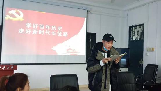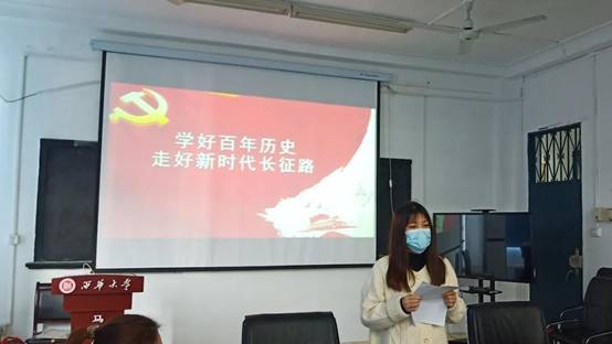 第一组组员冉红瑶谈到:“党史中有很多成功的经验—党的建设的经验、领导武装斗争的经验、执政的经验、社会主义建设的经验等等,以及经受挫折失败的教训,都是我们宝贵的财富。学习党史既是一次把握规律、把握未来的理论学习,也是一次坚定信仰、坚定方向的党性教育。”