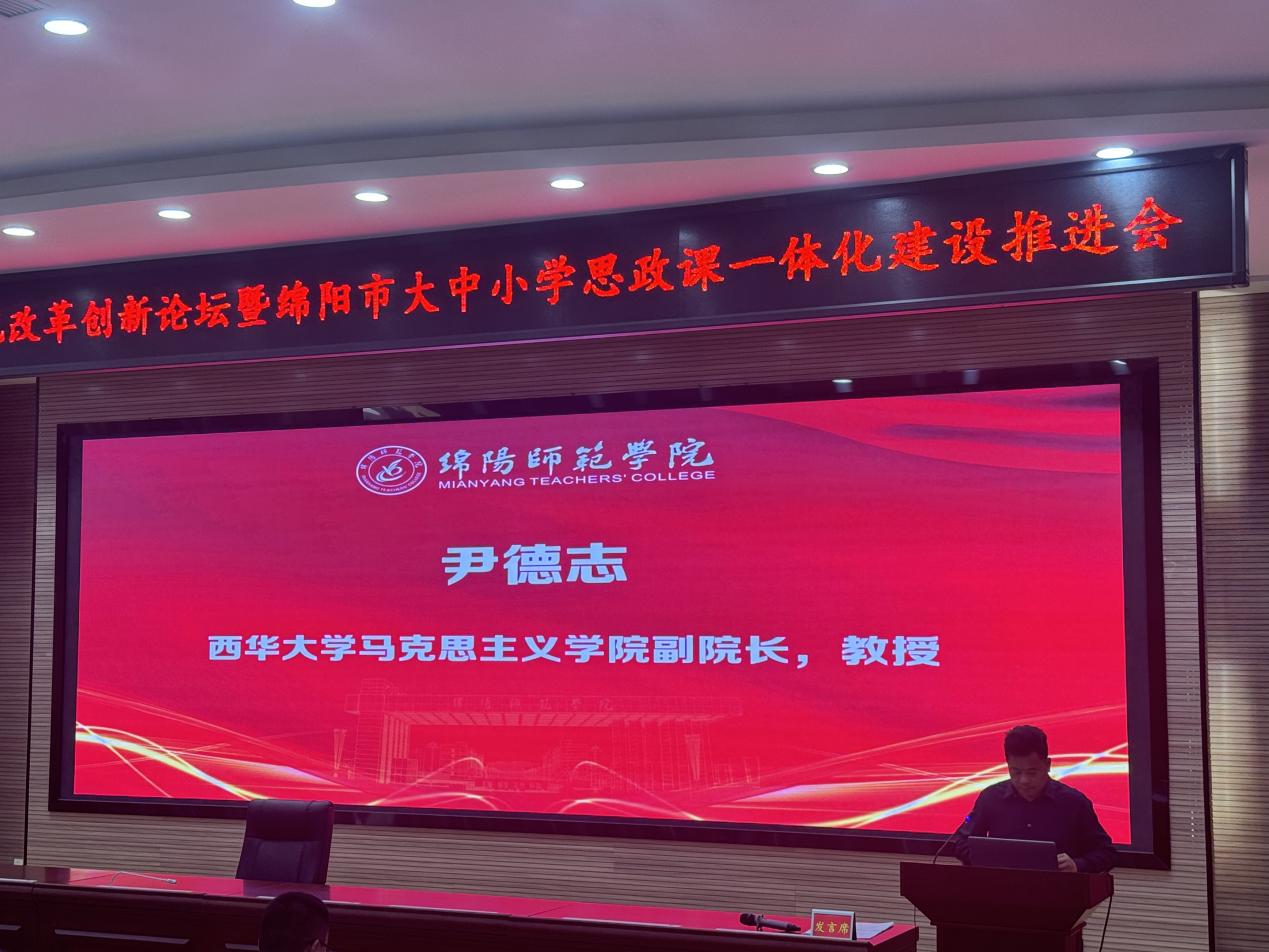 2025年4月26日,成渝地区大中小学思政课一体化改革创新论坛暨绵阳市大中小学思政课一体化建设推进会在绵阳师范学院举行。在经验分享环节,副院长尹德志教授作了题为“推进大中小学思政课一体化建设的西华实践”的经验交流。
