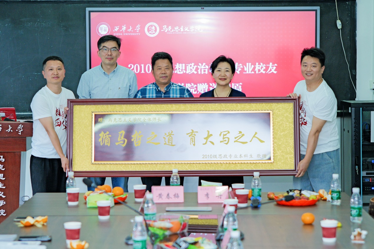 十年光阴流转,校友们始终心系母校。为表达对学院的感恩之情,2010级思政专业校友向学院赠送纪念牌匾“循马哲之道,写大写之人”,彰显了赤子之心与马院精神的传承。