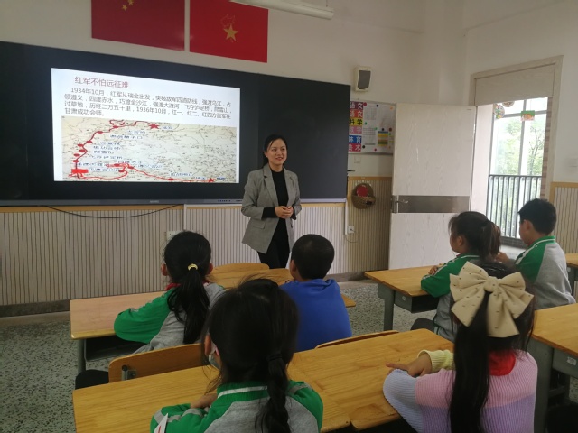 为系统推进在青少年中开展党史教育,马克思主义学院教工第二党支部和电子科技大学实验中学附属小学德育处取得联系,于4月23日下午在2008级4班开展了一堂主题为《讲党史 话成长》的党史教育课。教工二支部王海容老师在课堂上为小朋友讲述了《红军不怕远征难》、《特级英雄黄继光》、《“两弹一星”精神》等三个小故事。