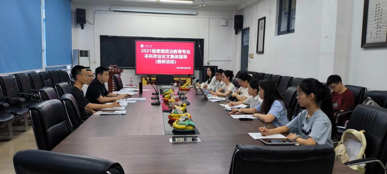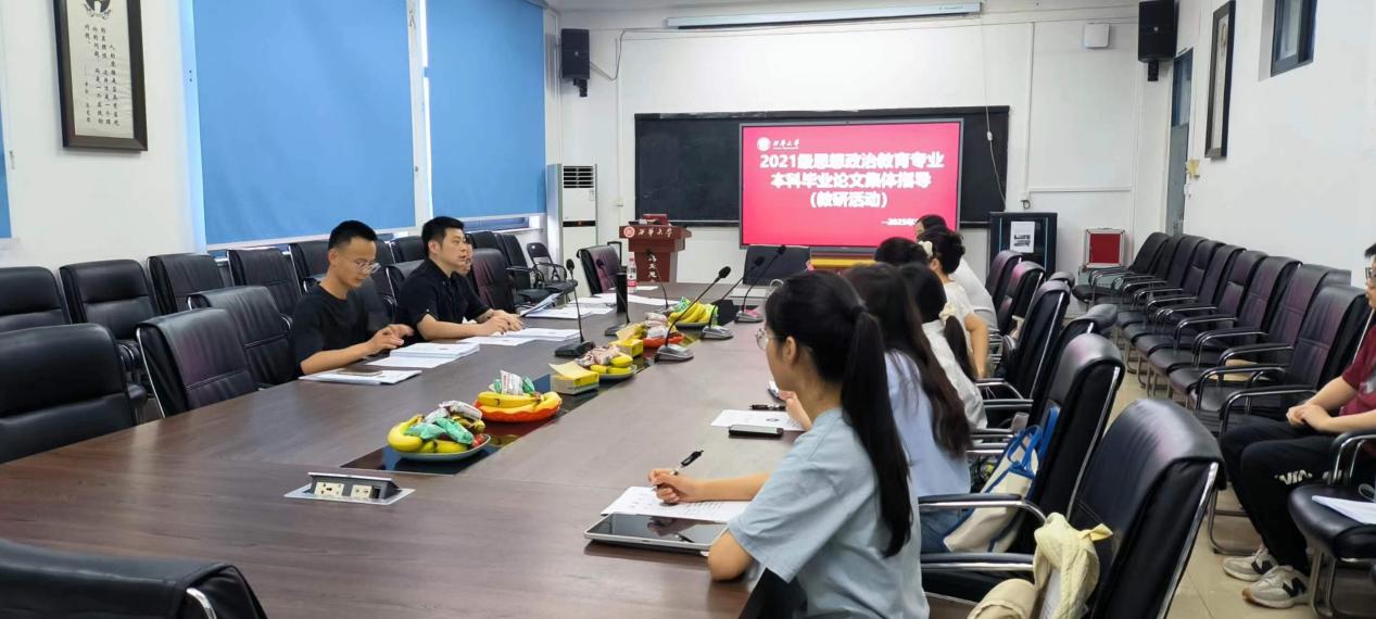 为深入践行“以本为本”育人理念,严把本科人才培养“出口关”。2025年5月22日,马克思主义学院思想政治教育专业在学院会议室开展了本科毕业论文集体指导教研活动。本次活动由思想政治教育系主任何为主持,2025届本科生毕业论文指导老师白云安、刘恒宇和2025届10余名本科学生参加了活动。开展此次活动旨在通过师师交流和师生交流,分享指导经验,探讨毕业论文创作中存在的不足并提出改进策略,进一步提升本科毕业论文质量。