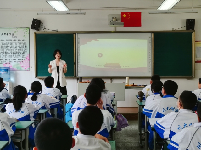 为深入学习贯彻落实习近平总书记在党史学习教育动员大会上的讲话,推动党史学习教育走心走深走实,马克思主义学院2018级研究生杨天菊于4月28日走进四川大学附属中学初二4班的课堂以《在奋斗和奉献中实现青春梦想》为题开展党史教育课。