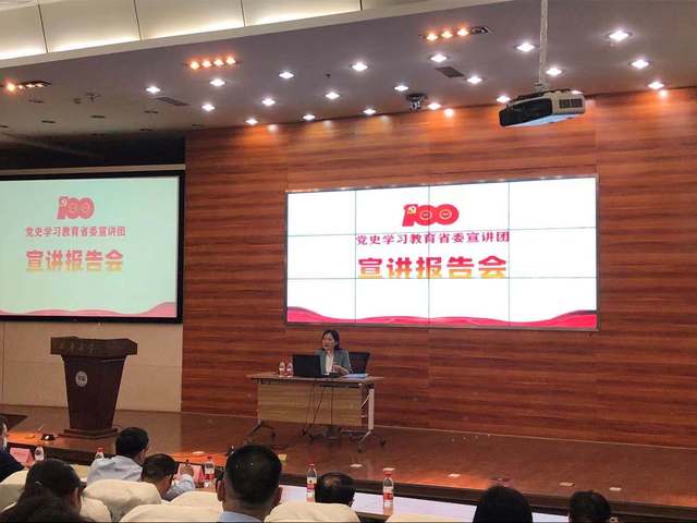 5月13日,学校机关党委在图书馆报告厅1厅举行“汲取党史智慧凝聚奋进力量”党史学习教育主题党日活动,省宣讲团成员、马克思主义学院院长万远英教授受邀作题为《从党的百年光辉历程中汲取继续前进的智慧和力量》的宣讲报告。