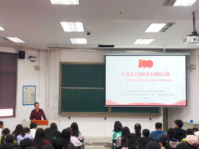 为深入学习贯彻落实习近平总书记在党史学习教育动员大会上的讲话精神,推动党史学习教育走深走实,迎接中国共产党成立100周年,四川省委宣讲团新时代文明实践青年宣讲分团成员、四川省第三届“青马工程”高校班成员、bw西汉姆联党史学习教育宣讲团成员赵赋聪,4.20日-5.27日期间在bw西汉姆联、成都东软学院、四川铁道职业学院为三地学生党员、学生骨干、团员青年近700人开展专题宣讲报告。