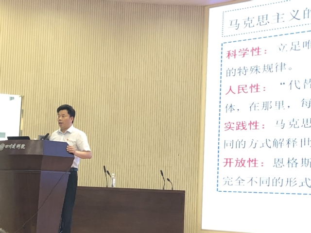尹德志教授作了题为《中国共产党理论创新史及其经验价值》的党史学习主题宣讲,围绕习近平总书记在党史学习教育动员大会上的讲话,深刻阐释了在全党开展党史学习教育的重大意义,从“历史和人民选择马克思主义是完全正确的”“马克思主义永葆生机的法宝在于理论创新与创造”“中国共产党理论创新及其成果”以及“中国共产党百年理论创新的经验价值”进行了详略得当的阐述,结合党的历史上重大会议和事件进行深入浅出地讲解,详细阐释了马克思主义在中国的传播缘由和由马克思主义是如何传入中国的,系统回顾了百年来我们党团结带领人民走过的光辉历程和取得的历史性成就,深刻解读了党在各个时期将马克思主义基本原理同中国实践相结合所形成的重要理论创新成果的意义和内涵。