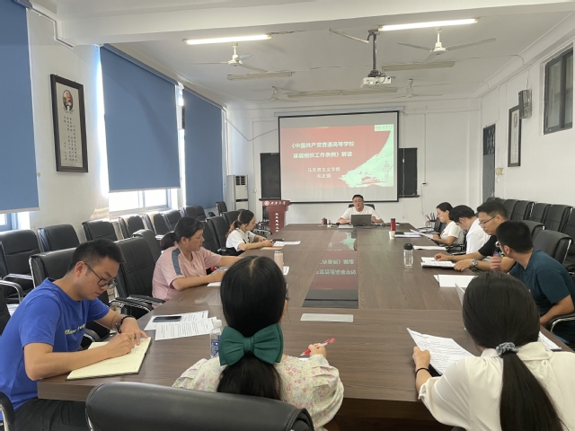 2021年7月22日下午,马克思主义学院在学院会议室召开党支部书记工作会议,学院党委书记毛正强、党委副书记李欣及各支部书记、支委参加了会议。