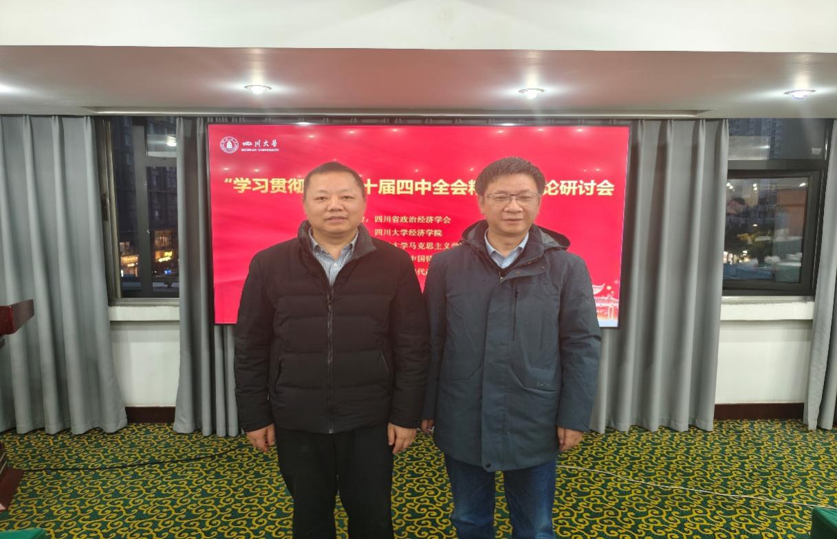 2025年11月23日,由四川省政治经济学会主办,四川大学经济学院、四川大学马克思主义学院、四川大学中国特色社会主义政治经济学研究中心等联合承办的“学习贯彻党的二十届四中全会精神”理论研讨会在四川大学举行。来自四川大学、四川省社会科学院、四川农业大学、中共四川省委党校、bw西汉姆联等高校与研究机构专家学者,《中州学刊》《山东师范大学学报(社会科学版)》《经济学家》等期刊主编编辑者30余人参加了本次会议。学院院长冯永泰教授、副院长王贝教授应邀参会。