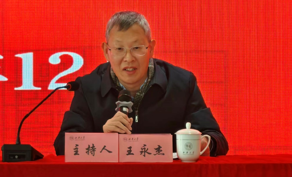 王永杰副校长对蒋永穆教授莅临我校开展学习贯彻党的二十届四中全会的专题讲座表示热烈欢迎和诚挚感谢。他指出,深入学习贯彻党的二十届四中全会精神,精准把握学术前沿,系统谋划科研攻关,是教师实现个人学术突破、服务学科发展、贡献国家战略的必然要求,也是肩负立德树人、资政育人的崇高使命。他要求,参会教师一定要认真聆听讲座精神,深入思考,积极交流,明确方向,将党的二十届四中全会精神切实转化为推动个人学术突破、助力学科高质量发展、服务国家战略需求的强大动力和实际行动。