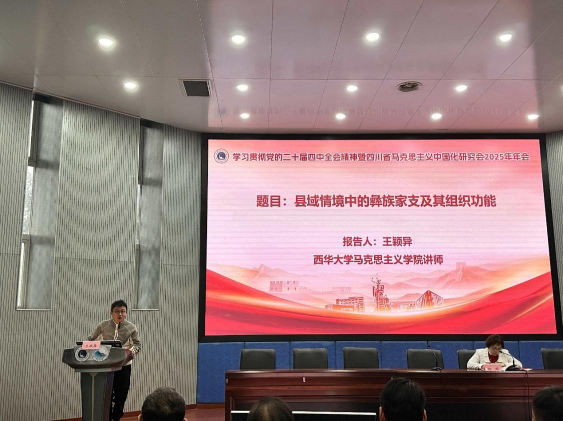 会议期间,上海交通大学教授陈锡喜、杜玉华,中国社科院大学教授辛向阳作了主治报告。来自四川大学、西南石油大学、成都理工大学、四川农业大学等高校的专家学者围绕学习贯彻党的二十届四中全会精神进行了深入的研讨。我院教师王颖异从铸牢中华民族共同体意识的角度,就如何推进民族地区的现代化转型进行了学术报告。