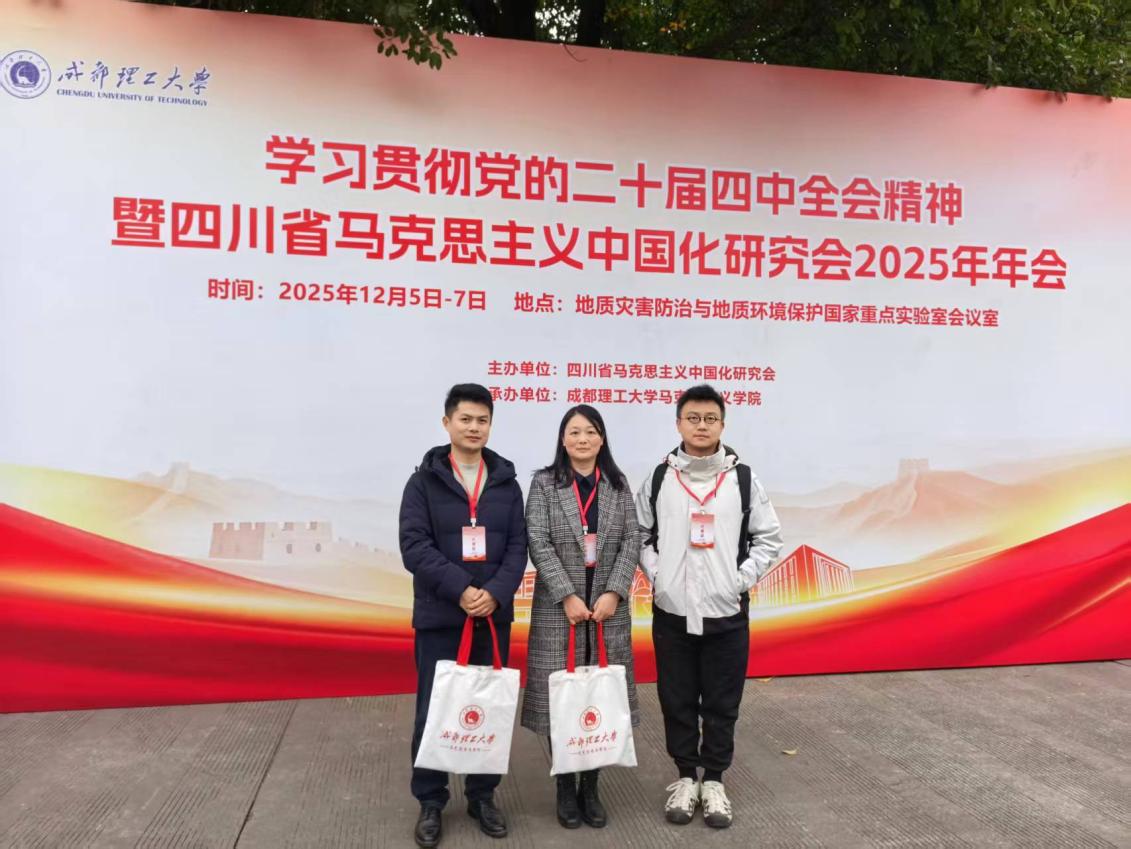 为深入学习贯彻习近平新时代中国特色社会主义思想和党的二十届四中全会精神,加强四川省马克思主义中国化学科的学术交流,2025年12月5-7日,四川省马克思主义中国化研究会于成都理工大学召开年会。马克思主义学院党委书记万远英,教师罗钰、余声启、王颖异受邀参会。
