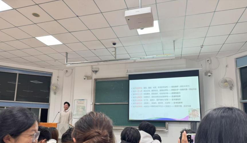 两位同学还详细介绍了大学期间重要的学术活动与学科竞赛,包括申报流程、团队组建与备赛技巧等内容,并通过亲身经历勉励新生勇于尝试、不断突破,在锻炼中提升综合能力。互动环节中,新生们围绕专业理论学习、实践项目选择等问题踊跃提问,现场交流热烈,气氛融洽。