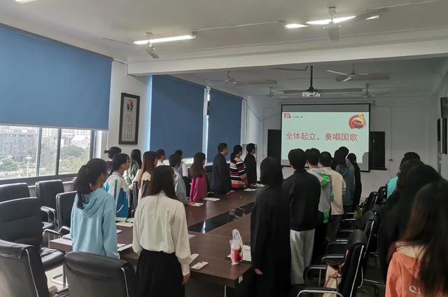 会议在庄严的国歌声中开幕,并由党校指导老师杜靖宣布第47期入党积极分子培训班正式开班。