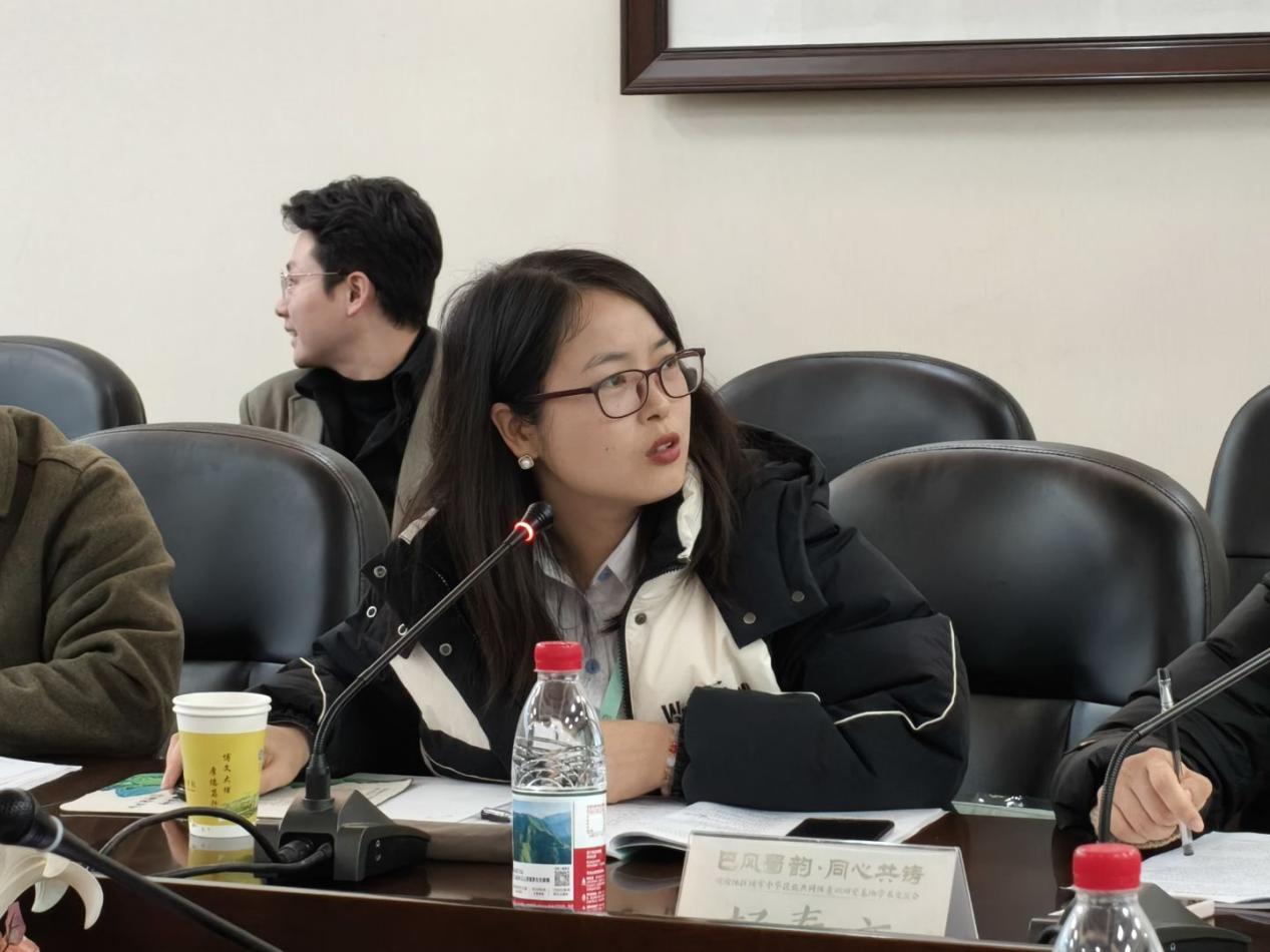 在21日上午的分论坛研讨环节,与会学者围绕相关主题展开了深入交流。研究基地副主任吴会蓉教授担任第一分会场主持人,并作了题为《民国时期西藏地方志中的中华民族共同体叙事研究》的报告,深入分析了民国西藏地方志中的中华民族共同体叙事的表现及其原因,强调应围绕铸牢中华民族共同体意识这一主线,进一步加强对地方志的系统整理、深入研究和有效利用,为相关学术研究和实践工作提供了重要参考。蒋秀芳、杨秦文、贾强三位青年学者分别以《多维链式效应下旅游促进民族交往交流交融与乡村全面振兴的协同机制研究》《边境旅游铸牢中华民族共同体意识的价值逻辑、现实困境与实践路向》《他乡、故乡与民族形式的大都会:中华民族共同体视域下战时文人对成都形象的三重书写》为题进行学术交流,多维度探讨了铸牢中华民族共同体意识的路径与方法。