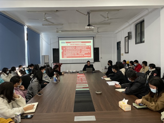 为贯彻落实西华委通〔2021〕63号《关于学习贯彻<中国共产党党徽党旗条例>的通知》,进一步规范使用党旗党徽,2021年11月17日12:40,马克思主义学院学生第四党支部在一教5015会议室召开了学习《中国共产党党旗党徽条例》专题组织生活会暨支部书记讲党课。支部书记杜靖老师及支部全体党员出席了本次会议。