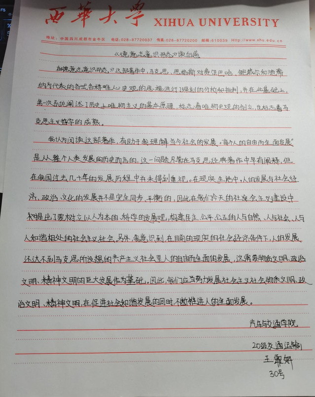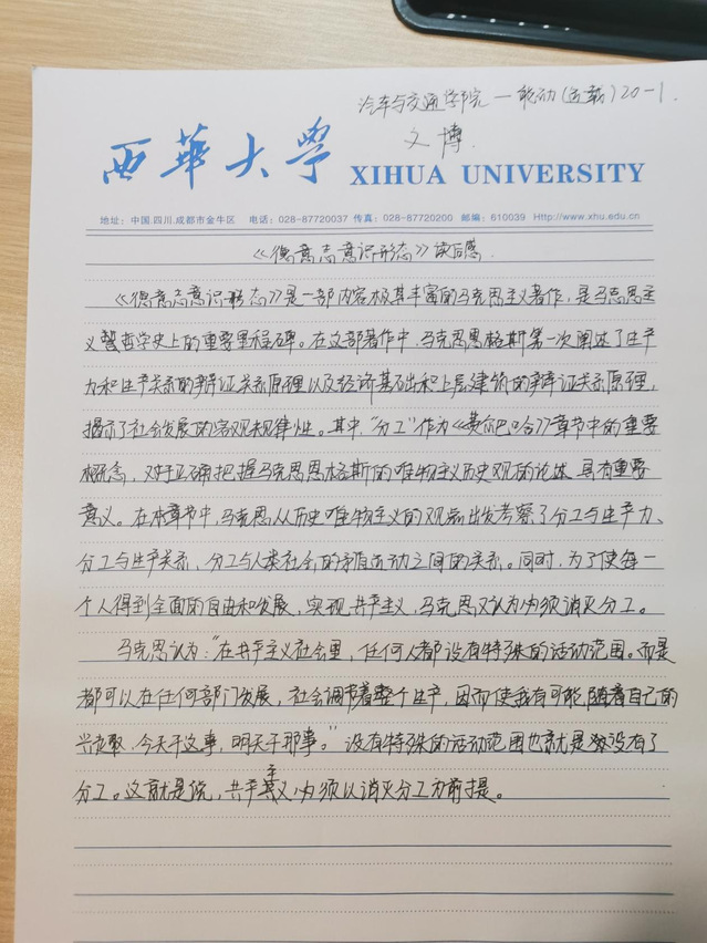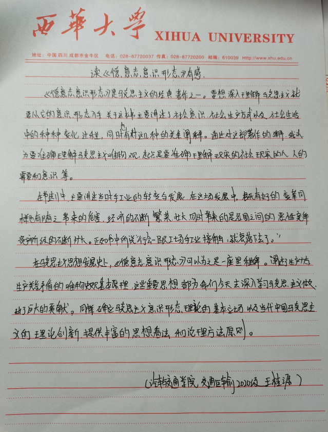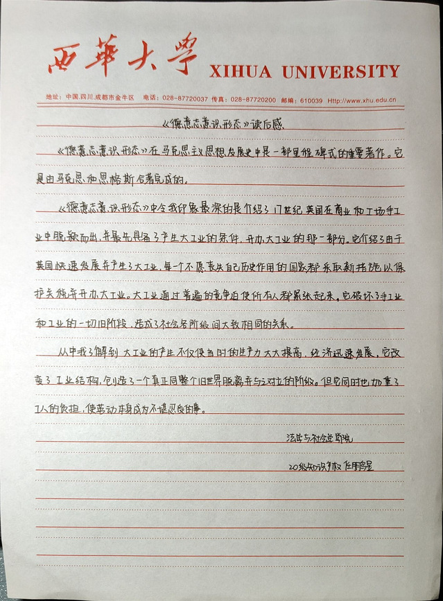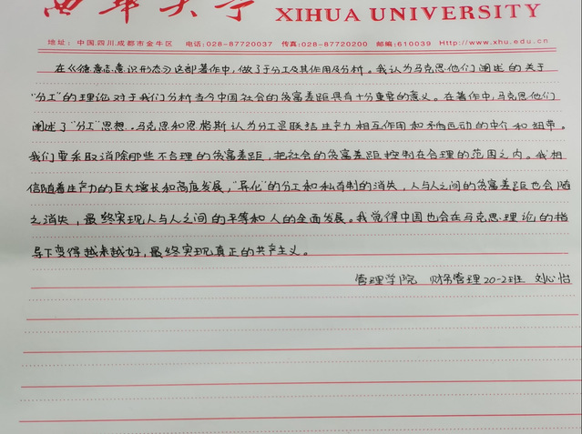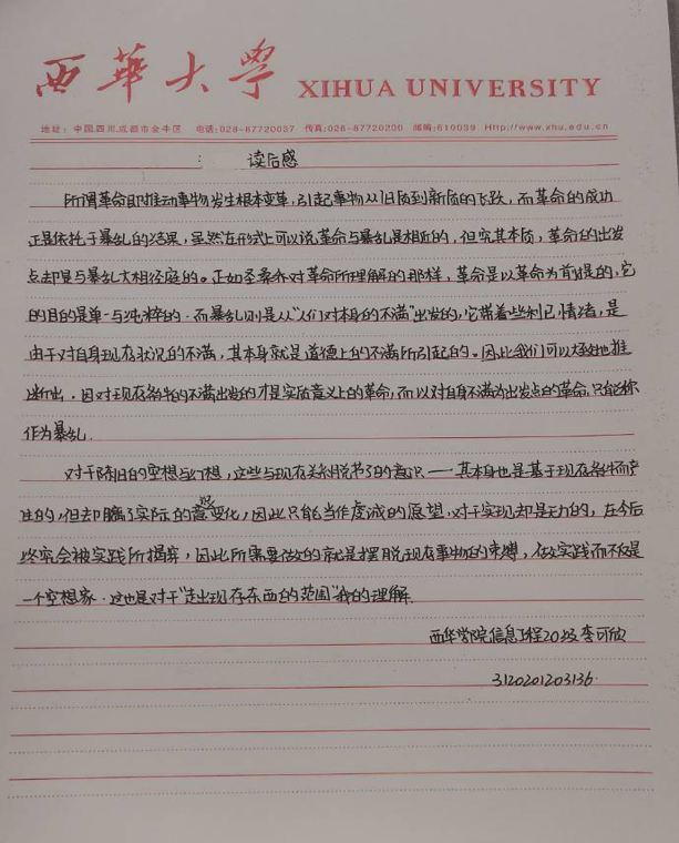 机械工程学院 测控技术与仪器 2020级 马鸿霖