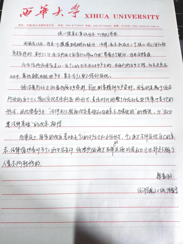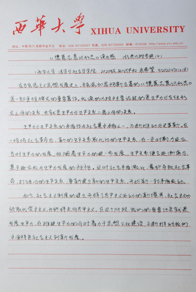 法学与社会学学院 知识产权 2020级 任鹏昱