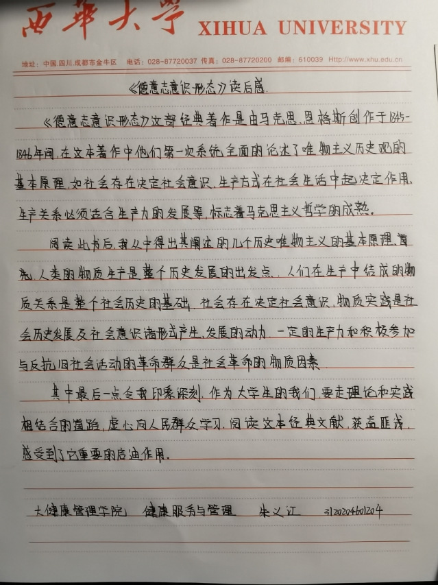 大健康管理学院 健康服务与管理 2020级 朱义江