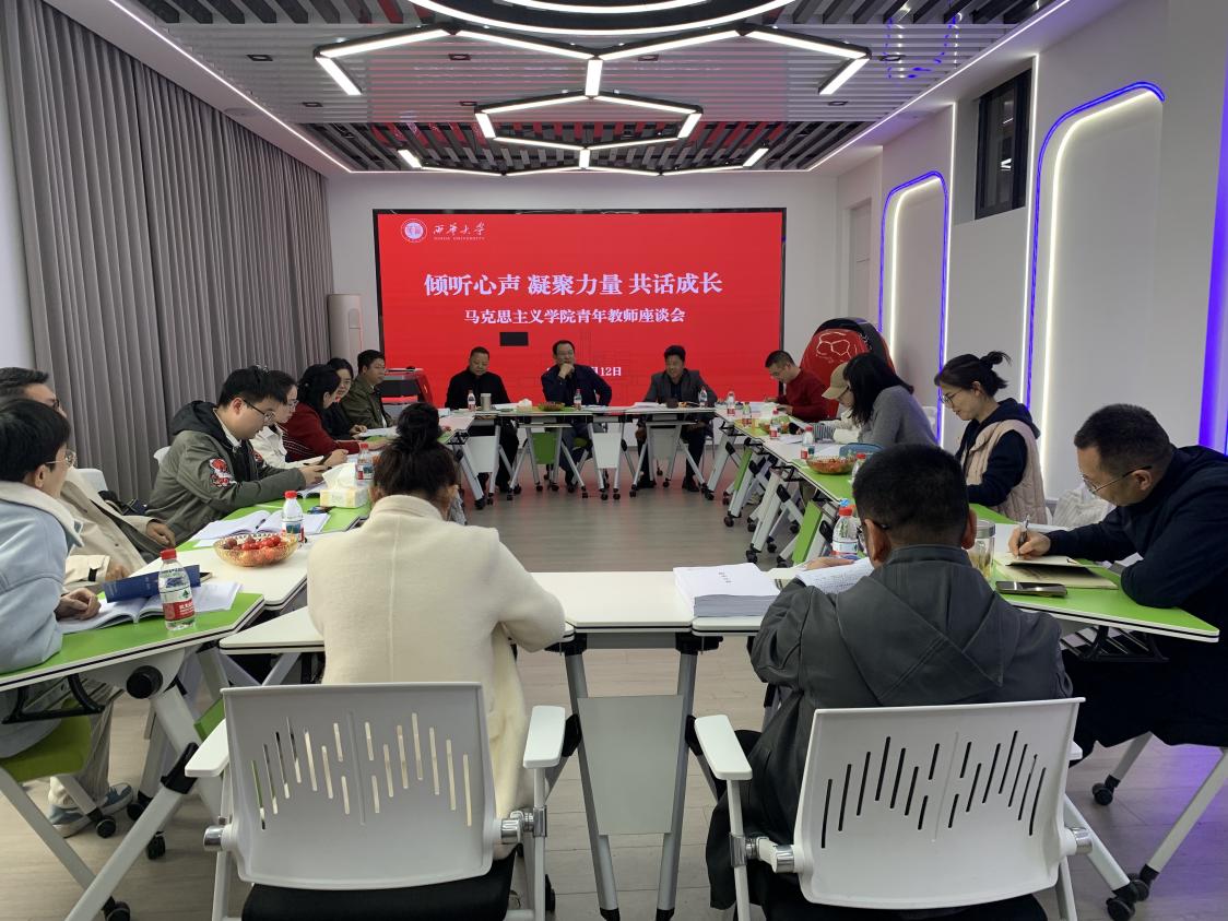 为推进人才队伍与师资建设,搭建学院与青年教师双向沟通平台,助力青年教师成长发展,马克思主义学院举行系列青年教师座谈会。