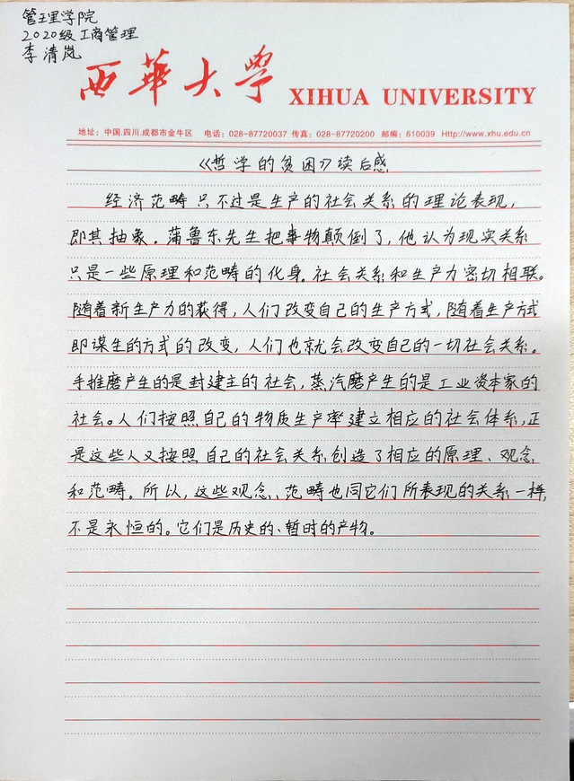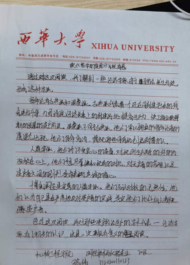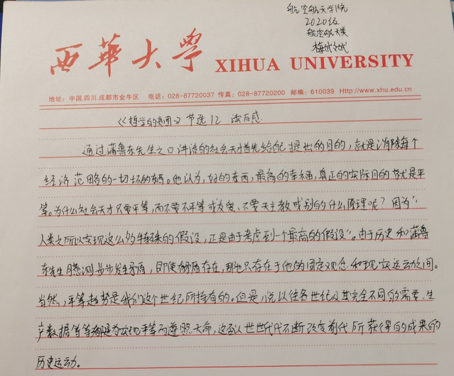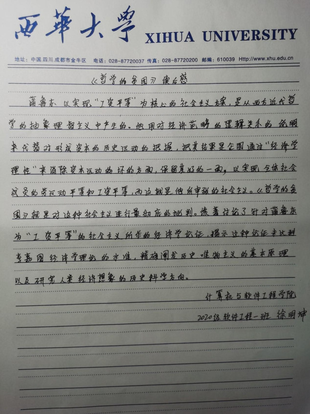 计算机与软件工程学院 软件工程 2020级 徐明坤