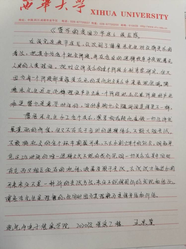 电气与电子信息学院 信息工程 2020级 王思鉴