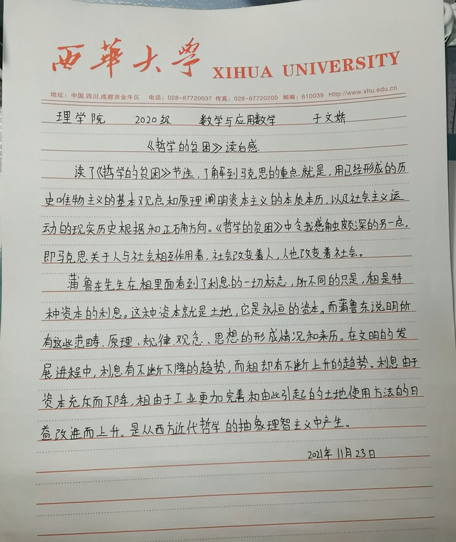 经济学院 国际经济与贸易 2020级 吕雨霏
