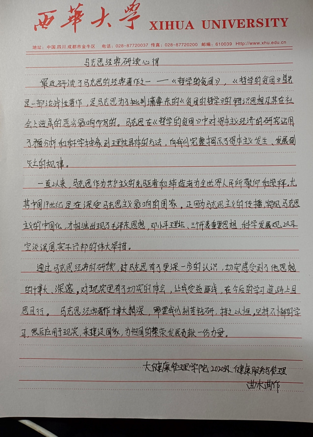 大健康管理学院 健康服务与管理 2020级 曲木曲作