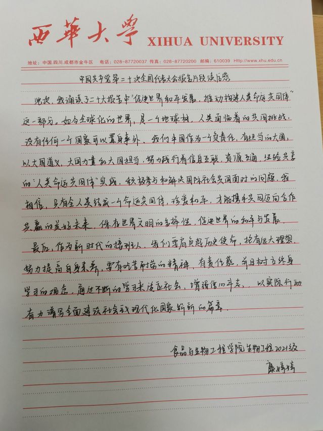 报告共分15个部分:一、过去五年的工作和新时代十年的伟大变革;二、开辟马克思主义中国化时代化新境界;三、新时代新征程中国共产党的使命任务;四、加快构建新发展格局,着力推动高质量发展;五、实施科教兴国战略,强化现代化建设人才支撑;六、发展全过程人民民主,保障人民当家作主;七、坚持全面依法治国,推进法治中国建设;八、推进文化自信自强,铸就社会主义文化新辉煌;九、增进民生福祉,提高人民生活品质;十、推动绿色发展,促进人与自然和谐共生;十一、推进国家安全体系和能力现代化,坚决维护国家安全和社会稳定;十二、实现建军一百年奋斗目标,开创国防和军队现代化新局面;十三、坚持和完善“一国两制”,推进祖国统一;十四、促进世界和平与发展,推动构建人类命运共同体;十五、坚定不移全面从严治党,深入推进新时代党的建设新的伟大工程。